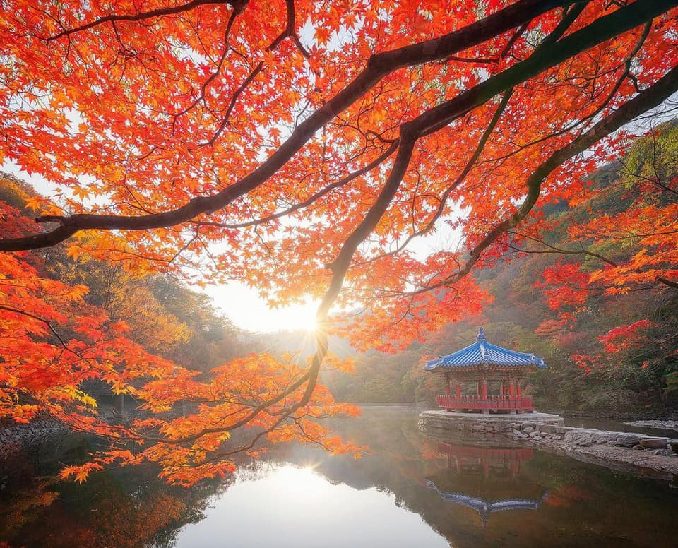 Naejangsan là một ngọn núi nổi tiếng ở Jeollabuk-do và là ngọn núi đẹp nhất ở Hàn Quốc để ngắm lá đỏ rực của mùa thu. Trên đường lên núi Naejangsan, các bạn sẽ được chiêm ngưỡng những hàng cây lá phong đổi màu rất đẹp mắt.